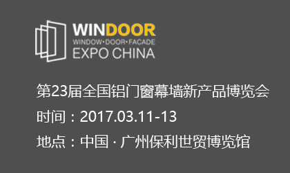 2017年3月11日,第23屆全國鋁門窗幕墻新產(chǎn)品博覽會在廣州保利世貿(mào)博覽館開幕,我公司將參加,展位號為6H02。屆時期待大家的光臨!