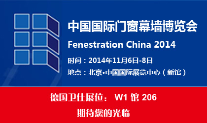 2014年11月06日第十二屆中國國際門窗幕墻博覽會在北京國際展覽中心(新展)開幕,我公司將攜手德國weiss集團(tuán)參加,我們的展位號是W1館206,屆時期待大家的光臨。